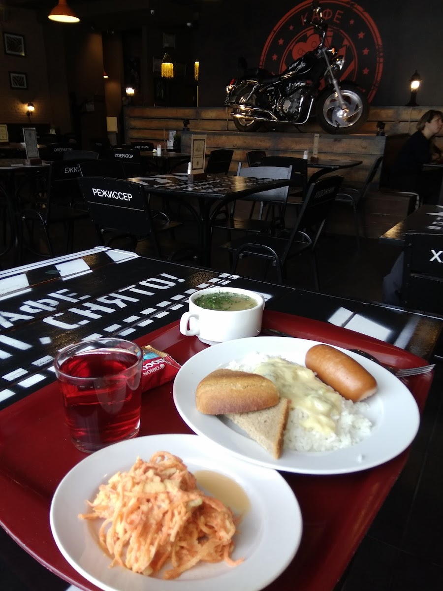 As you step inside, you're immediately enveloped by a unique atmosphere. The decor pays homage to the cinematic world, with chairs designed like those of a director, producer, and cinematographer, alongside a motorcycle perched on a wooden pedestal. Each element tells a story, inviting you to linger a little longer. This quirky setting becomes a backdrop for enjoying delicious meals and excellent coffee.